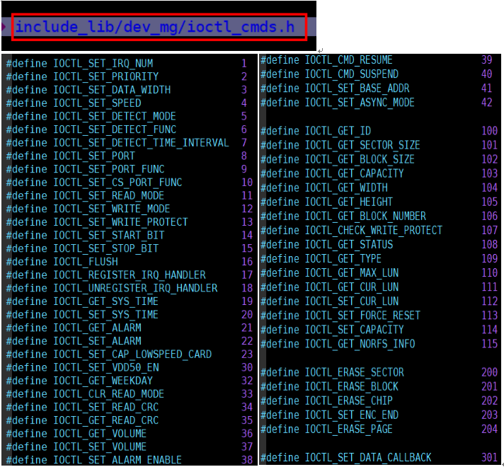 1.2.9. 函数int dev_ioctl(void *device, int cmd, u32 arg)