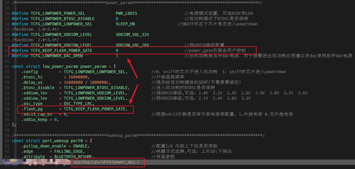 修改power_param结构体中的vddiom_lev成员,可以配置芯片的强VDDIO电压;