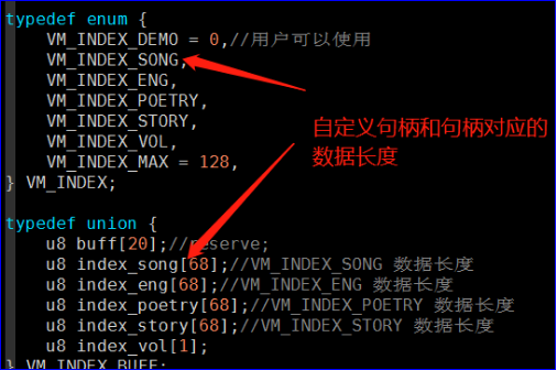 用户可在vm_api.h的VM_INDEX里添加自己的id号。