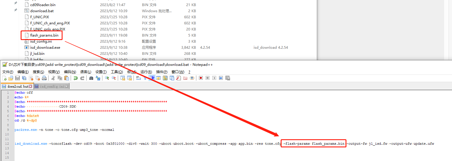 可以通过isd_download.exe参数-flash-params指定FLASH写保护参数配置文件。